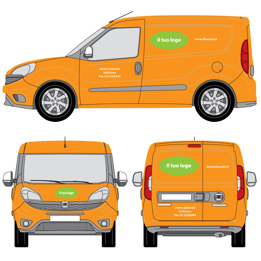 - Grafica su fianco completo (finta finestra + portiera) + retro prespaziato + cofano